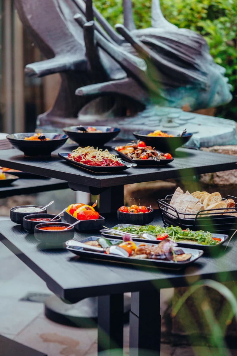 Auf euch wartet ein vielseitiges Grillbuffet mit ausgewählten Fleisch- und Fischspezialitäten sowie köstlichen vegetarischen und veganen Optionen. Die saisonalen Beilagen werden frisch zubereitet und runden das Erlebnis perfekt ab. Ein Highlight des Abends ist das Live Cooking am Green Egg Grill, bei dem ihr die Zubereitung direkt miterleben könnt – aromatisch, rauchig und voller Geschmack.